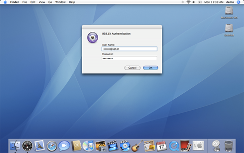 Para o Sistema Operativo MacOS X (v10.4.1 e acima), os passos para a configuração de acesso à rede wireless “Eduroam”: