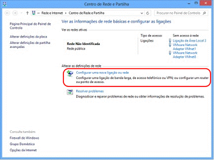 5º passo - Na janela que agora surge, selecionar a opção “Alterar definições de ligação”;
