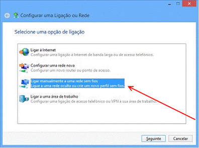 3º passo - Seguidamente selecionar a opção “Ligar manualmente a uma rede sem fios” e clicar em “Seguinte”;
