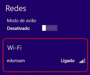 Neste momento, o computador já deverá estar ligado à rede sem fios da “eduroam”.